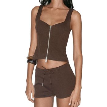 Conjunto de ropa activa de 2 piezas con patrón sólido con estilo para mujer, chaqueta sin mangas con cremallera, camiseta sin mangas, pantalones cortos, secado rápido, informal, hasta la rodilla, Verano